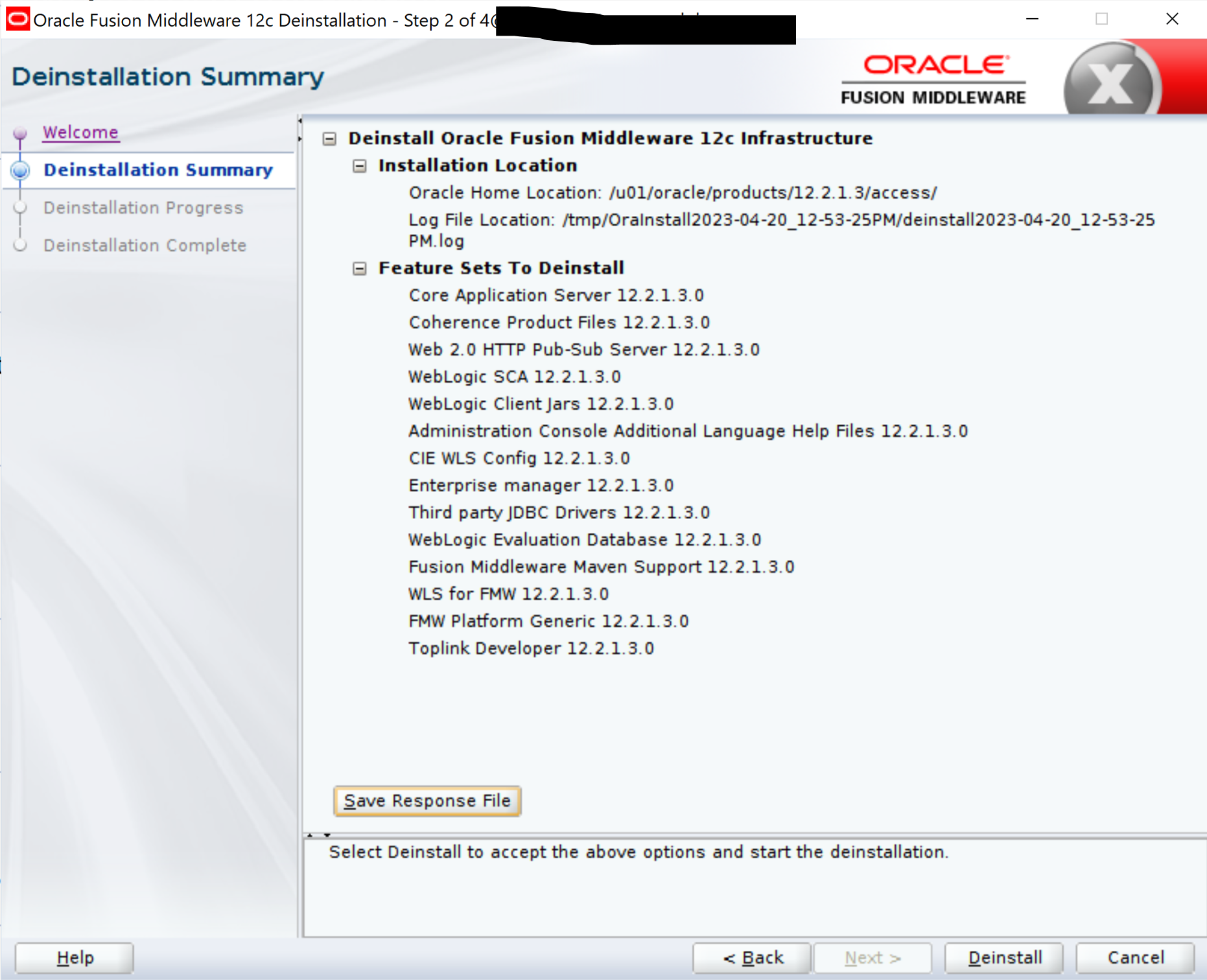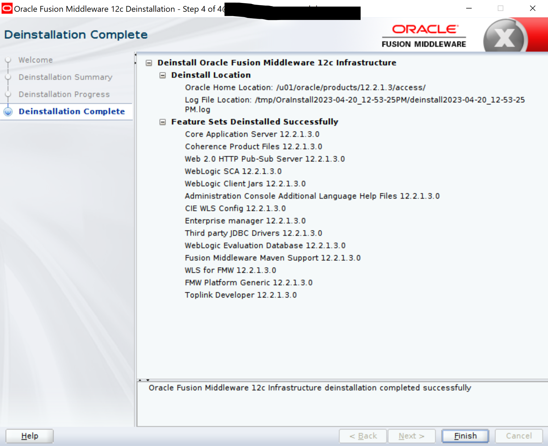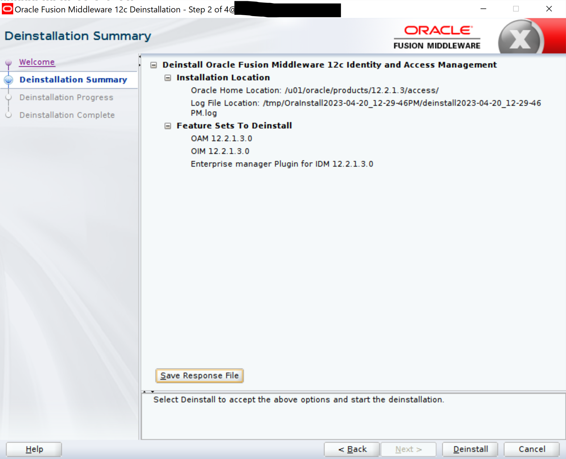 Uninstalling 12.2.1.3 Oracle Fusion Middleware 12c software on OAM host