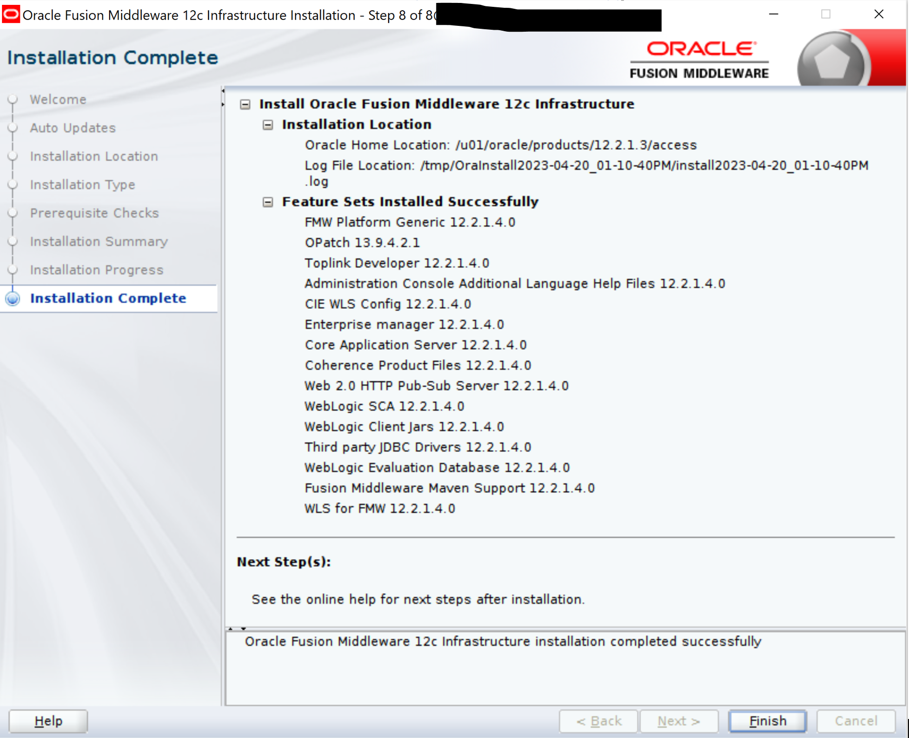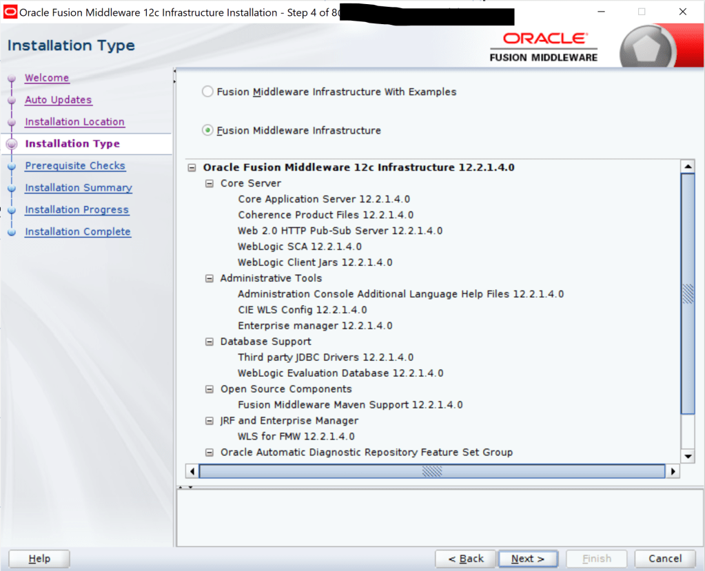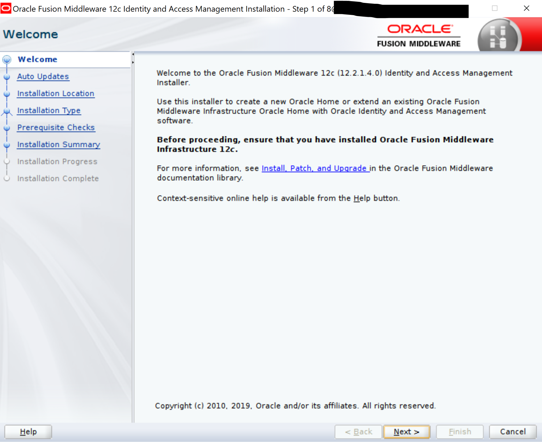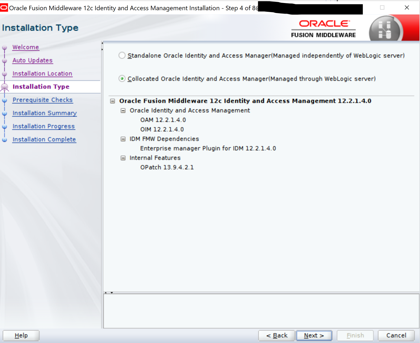 NOTE: Navigate to the 12.2.1.4 software staging directory and invoke the installation JAR files – fmw_12.2.1.4.0_infrastructure.jar & fmw_12.2.1.4.0_idm.jar, in that order.