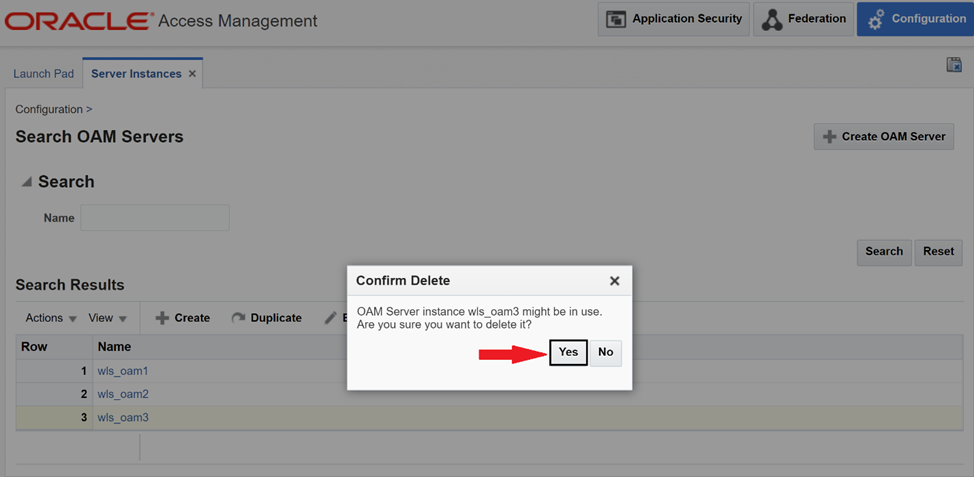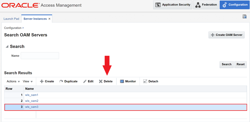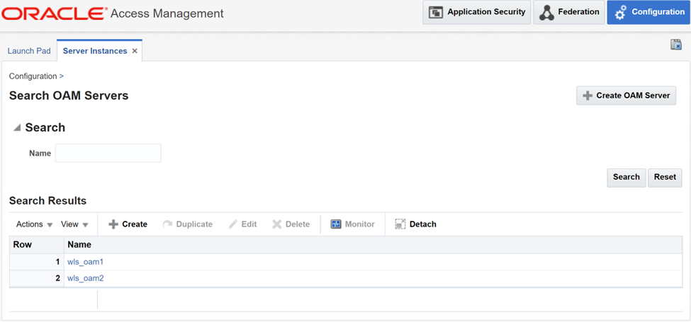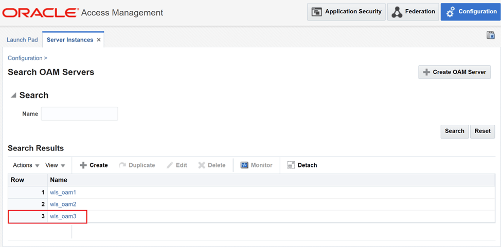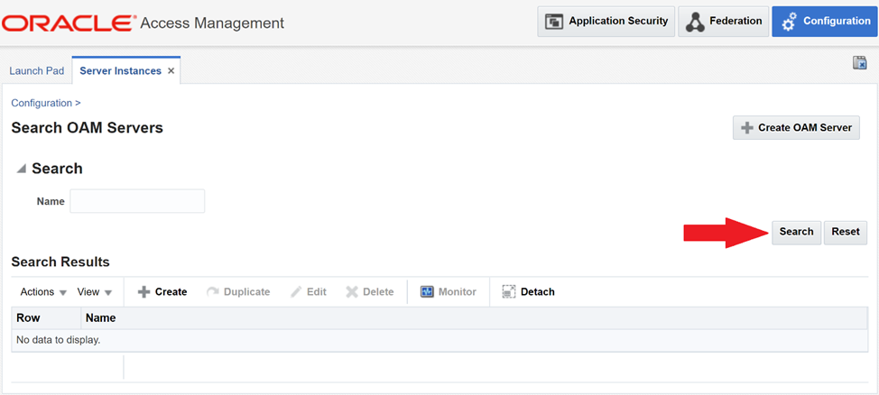 While still logged in to OAM Console, navigate to “Configuration” -> “Server Instances” -> “Search”.