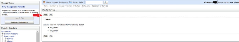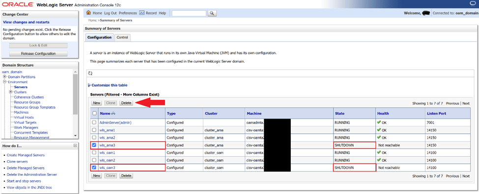 4. Remove OAM managed server from OAM console
