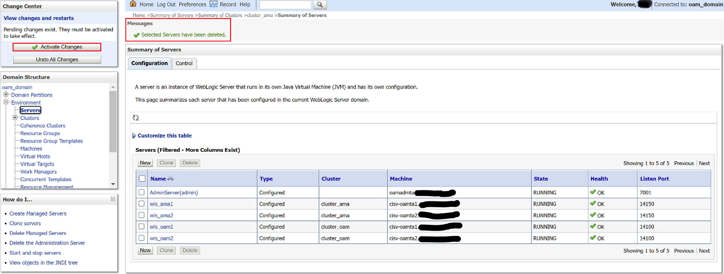 You can see that OAM managed server cluster has one node less than before.