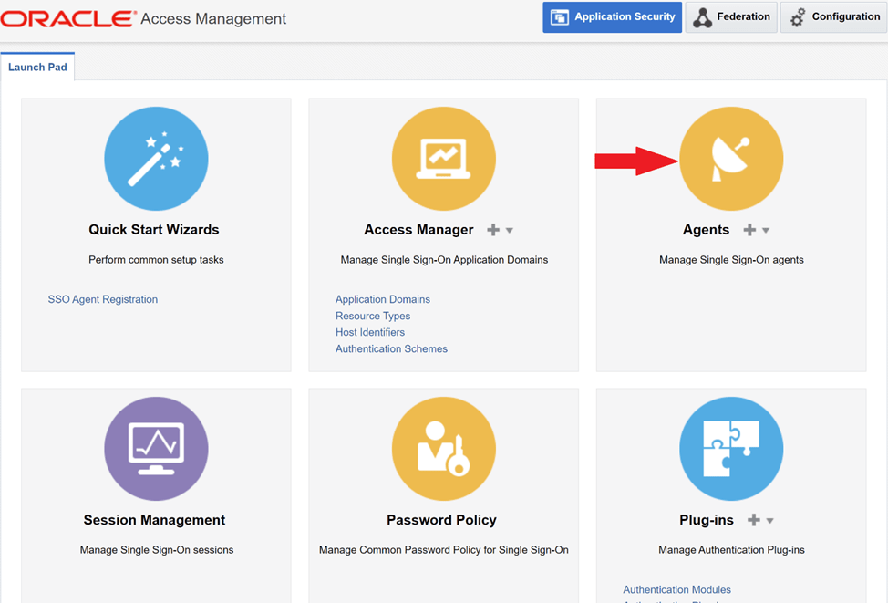 Login to Oracle Access Manager console and navigate to Agents.