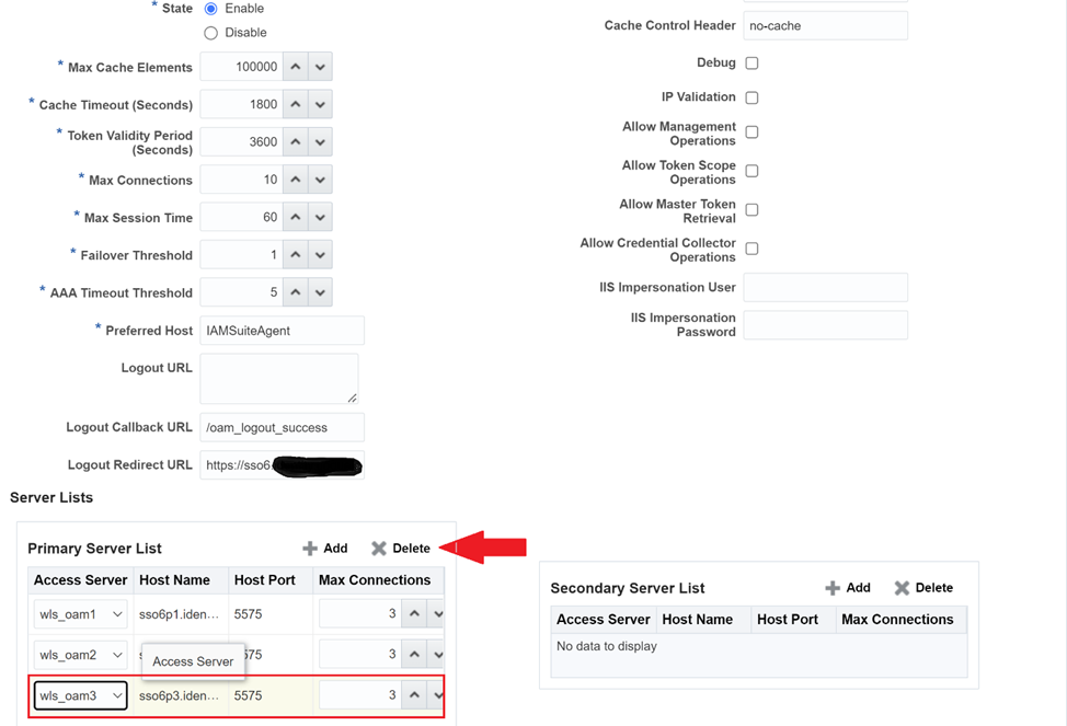 2. Remove server name from OAM WebGate agents